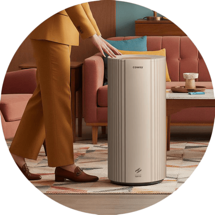 Coway Suite dibina untuk udara bersih di ruang keluarga atau ruang bersama, menggunakan HyperVortex™ Air Technology dan penapisan 360° yang kuat.